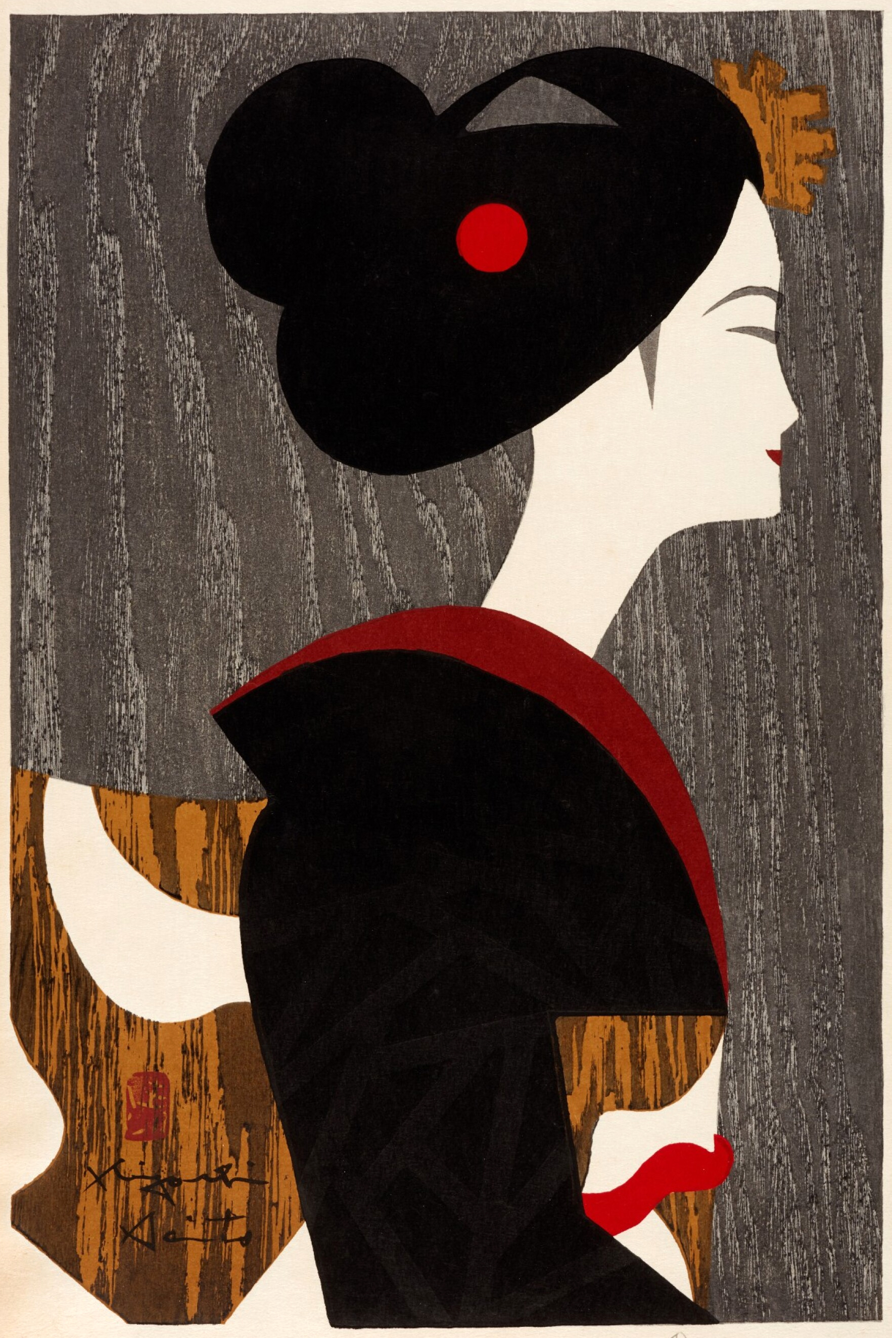 Kiyoshi Saito (1907-1997) was one of the most important Japanese woodblock print artists of the 20th century. Originally trained as a painter, Saito became a pivotal member of the "Sosaku Hanga" or "Creative Print" movement in the Post-war period, attracting international audiences and accolades. In the spirit of Sosaku Hanga, he engaged with every aspect of the printmaking process, meaning that each of his works is self-drawn, self-carved and self-printed. While his early works reveal an attention to three-dimensionality, as his style evolved, his designs became increasingly two-dimensional, distinguished by bold blocks of color, refined designs, and rich texture.